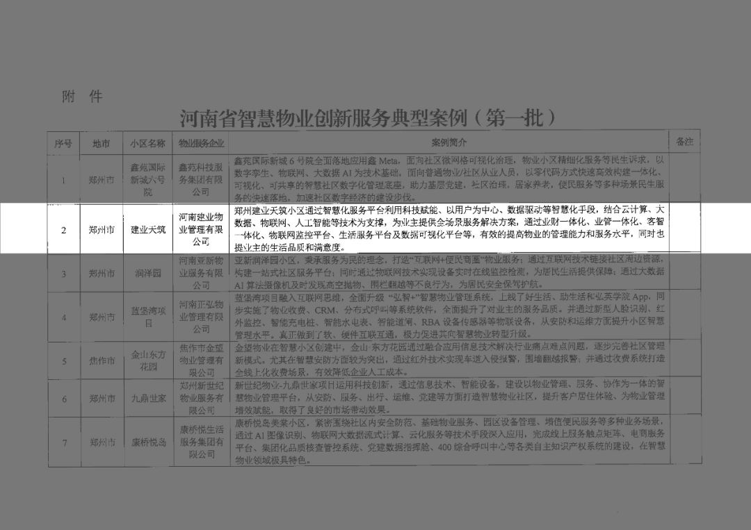 建業物業入選河南省首批智慧物業創新服務典型案例名單