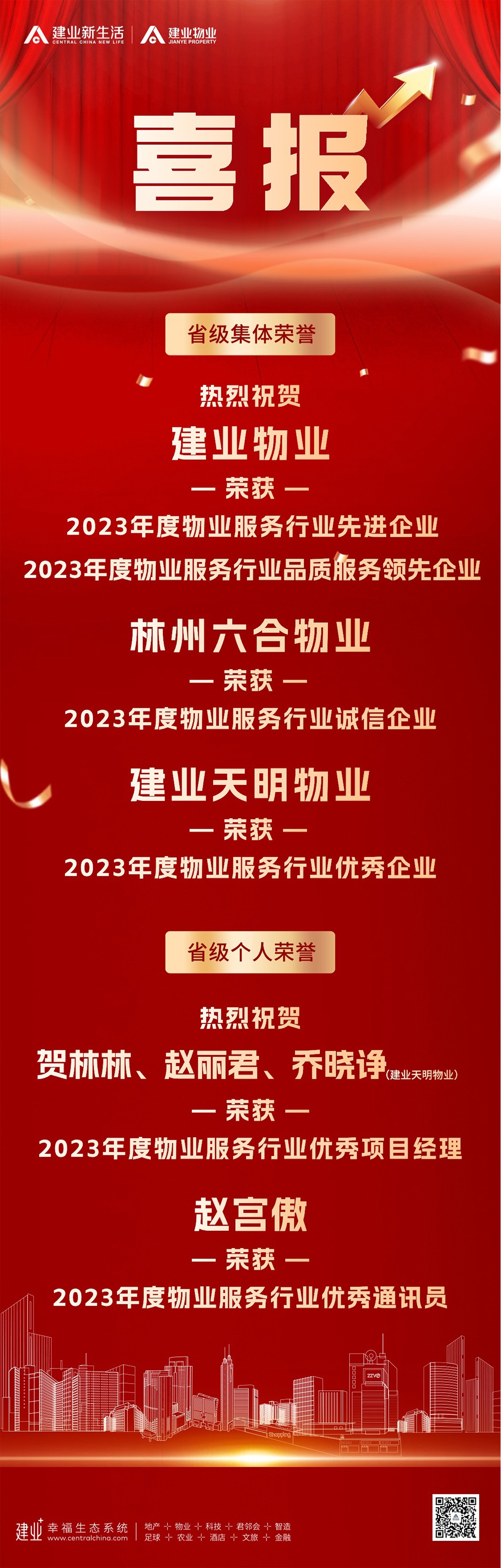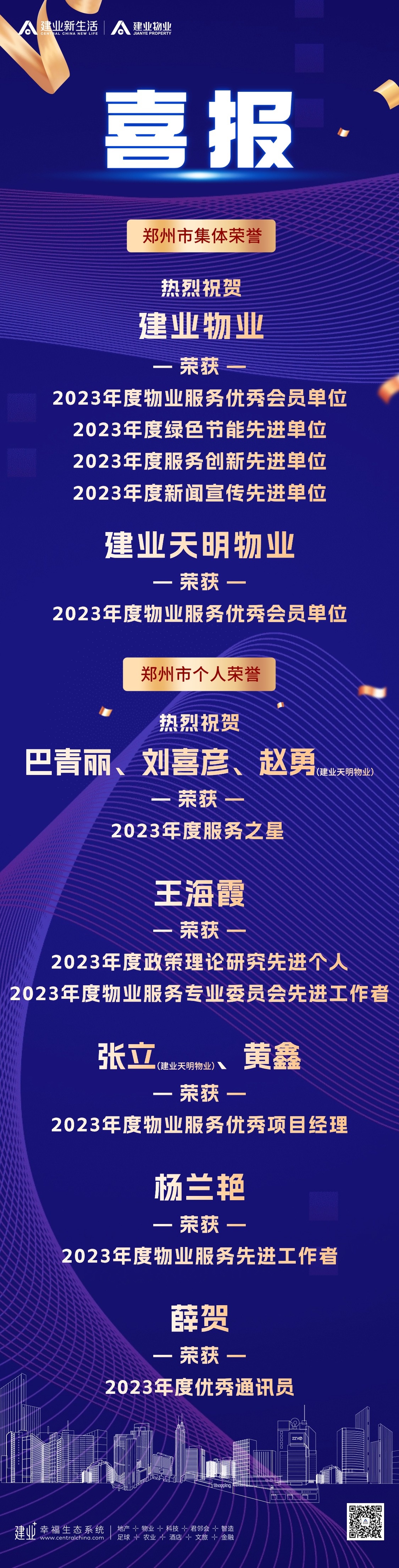 近日,建業物業及子公司林州六合物業、建業天明物業連續榮獲多項集體榮譽及個人榮譽,充分體現了市場、行業與業主對建業物業的認可與肯定。