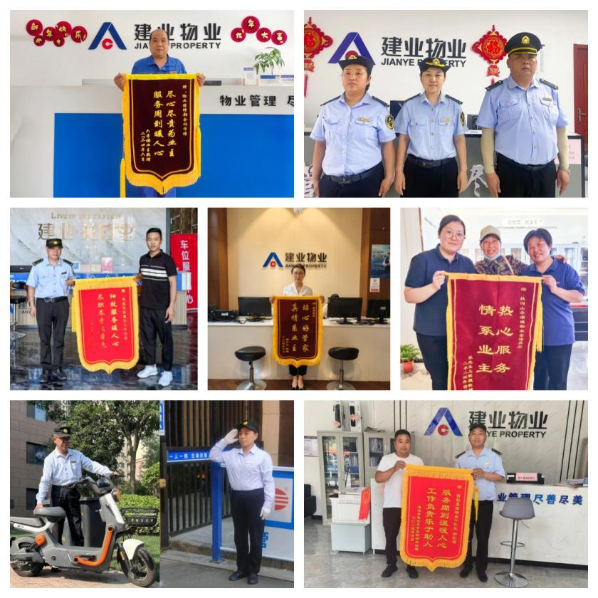 6月份,建業物業在管園區涌現出好人好事969件,其中收到錦旗287面、感謝信104封,其他致電表揚等578次。