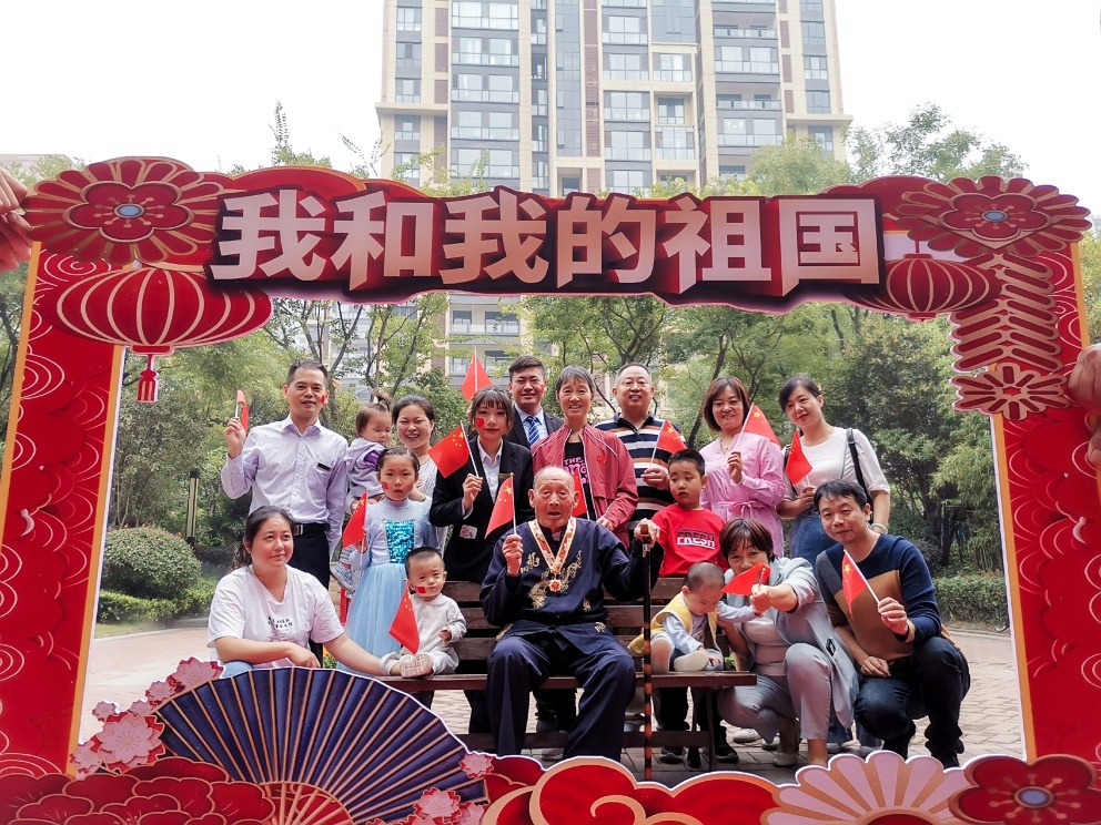 國慶節期間,全國上下都在慶祝。物業在小區做了各種慶祝裝飾,小區門口也懸掛起國旗和慶祝條幅,處處洋溢著歡樂。物業專門邀請我給園區的小朋友們講紅軍故事、和業主合影,一起傳遞愛國情懷。小區其樂融融,熱鬧之余,令人安心。