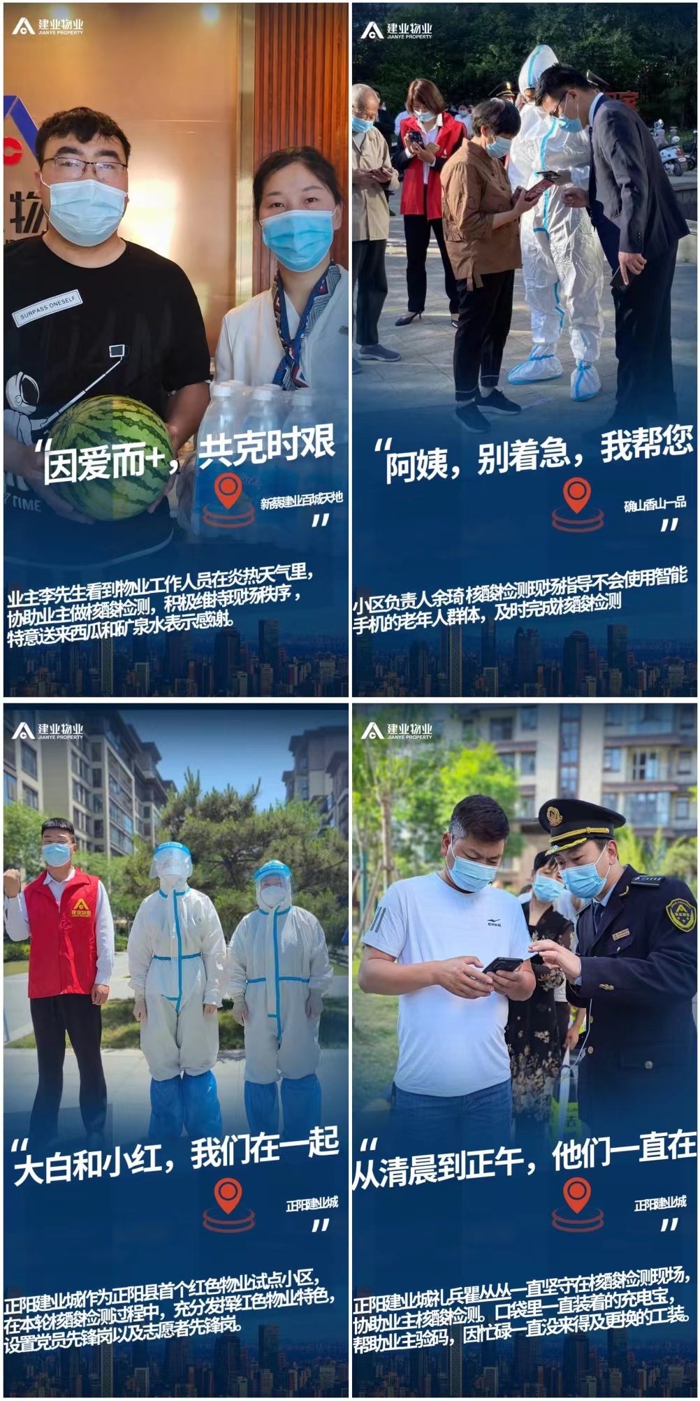 防疫工作困難重重,建業物業從未退縮,我們用一次次拼盡全力的守護,換來了更加專業與溫暖的服務。盡管目前防疫形勢嚴峻,但建業物業人不僅有勇氣,更有信心,我們一定會守護業主的安心生活,讓希望來得更快!