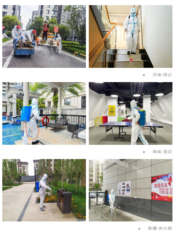 正值夏季,全國各地氣溫居高不下,但建業物業人仍舊穿著密不透風的防護服對園區各處進行全方位的科學消殺,對公共環境、電梯、垃圾箱健身設施等不同區域使用不同的消毒設施和消毒液,科學深入地消毒,不留一處死角,全面保障業主公共區域的安全。