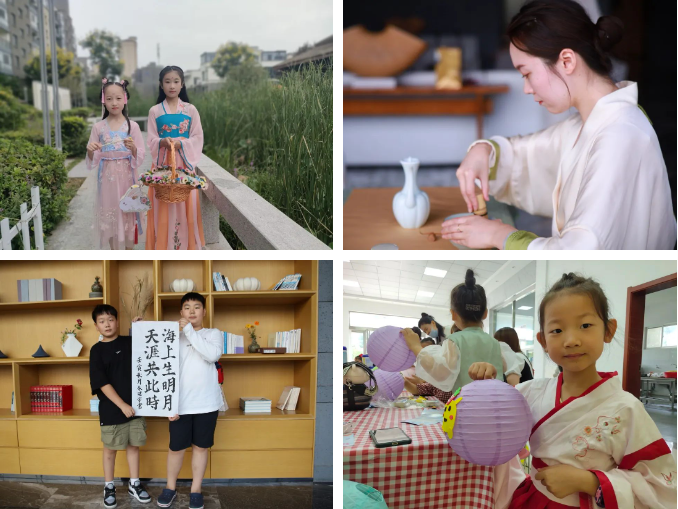 這一天的快樂,從一早就開始蔓延,園區內張燈結彩,成串的燈籠在微風中搖曳。草坪上的玉兔惟妙惟肖,還有打扮成嫦娥仙子的小業主在到處分發快樂。熱鬧的園游會上,業主們穿上漢服,瞬間穿越到古代,體驗傳統文化之美。投壺、套圈、猜燈謎、做花燈、畫兔爺兒、品茶等傳統活動,讓業主們收獲歡樂的同時也收獲了知識。