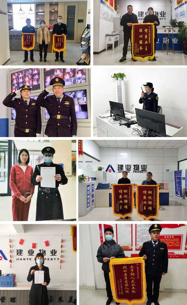 3月份,建業物業在管園區涌現出好人好事882件,其中收到錦旗210面、感謝信101封、其他致電表揚等571次。