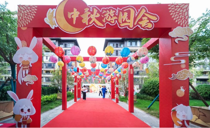這是一次近三十年一遇的相逢,這也是一次傳統與現代的相遇。當中秋節遇到教師節,“團圓”和“感恩”融合在一起,快樂就變成double份的了。 一次游園,熱鬧是節日的主基調 這一天的快樂,從一早就開始蔓延,園區內張燈結彩,成串的燈籠在微風中搖曳。草坪上的玉兔惟妙惟肖,還有打扮成嫦娥仙子的小業主在到處分發快樂。熱鬧的園游會上,業主們穿上漢服,瞬間穿越到古代,體驗傳統文化之美。投壺、套圈、猜燈謎、做花燈、畫兔爺兒、品茶等傳統活動,讓業主們收獲歡樂的同時也收獲了知識。 一塊月餅,團員是所有人心頭的念 圓,在中國傳統文化中有著極好的寓意,月圓之夜,也是團圓之時。月餅自北宋時期就成了中秋節時不可或缺的象征,也是團圓宴上必備的一道美